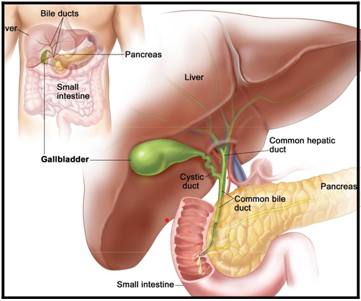 Gall bladder is located beneath the liver on the right side of the abdomen.The gall bladder stores bile, a digestive fluid produced by your liver. If diagnosed early, they have good very good survival rates.