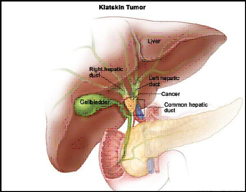 Hilar cholangiocarcinoma (Klatskin’s tumour) is the cancer involving the confluence of right and left hepatic ducts.